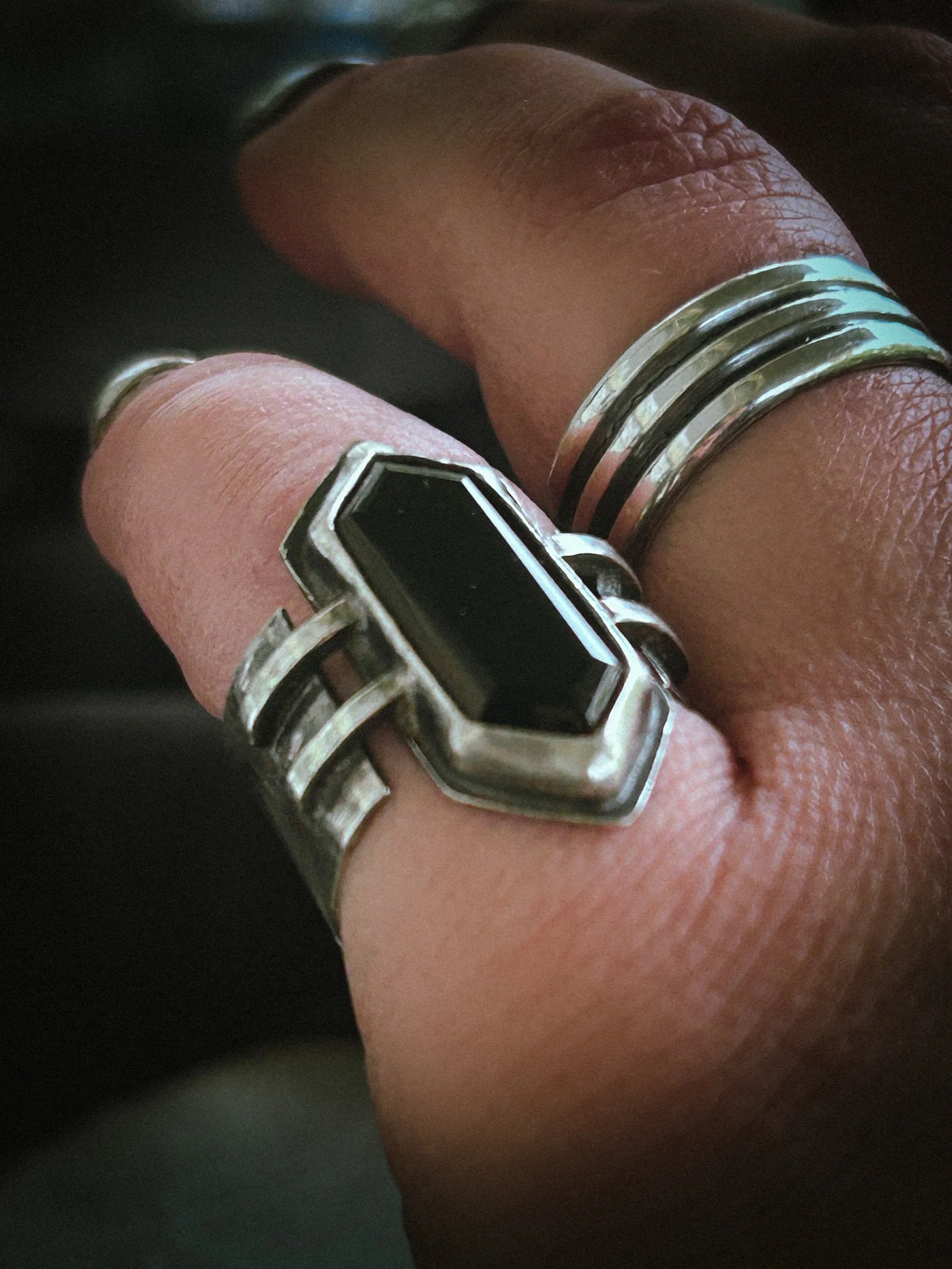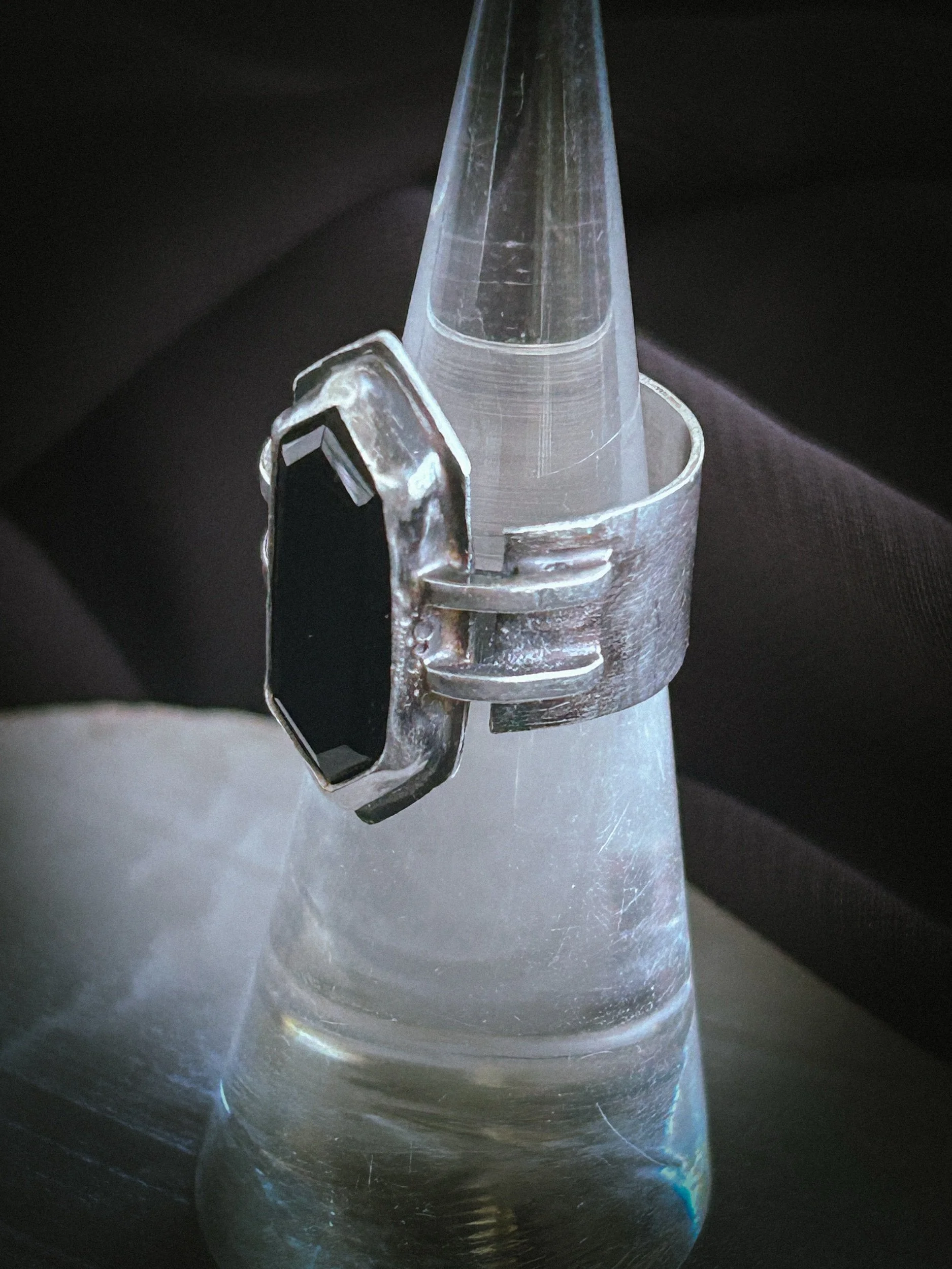 Black Onyx Hex(agon) Ring, Faceted, Sterling Silver, Made to Order