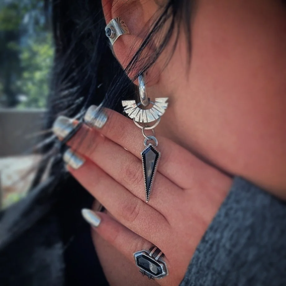 Categories: All Metal Type .925 Sterling Silver Copper Gemstone Abalone Shell Agate Amber Aurora Opal Black Onyx Bloodstone(Heliotrope) Chalcedony Crazy Lace Agate Galaxy Cat's Eye Green Onyx Hypersthene Jade Labradorite Larimar Lava Rock Lepidolite Moonstone Paraiba Onyx Peach Moonstone Peridot Pyrite Rose Quartz Selenite Tiger's Eye Style Ear Cuff Earrings Rings Statement Pendants All / Style / Earrings All Metal Type Gemstone Style Ear Cuff Earrings Rings Statement Pendants Glacier Queen Earrings, Sterling Silver $153.00 Add To Cart Added! Silent Knight Earrings, Sterling Silver $167.00 Add To Cart Added!